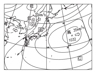 よって(c) の「鉛直分布図の観測点は、天気図に示されたA、B、Cの内、C地点である。」は正しい!