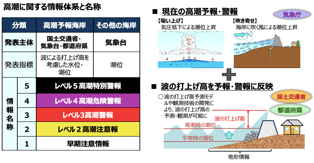これまでの潮位だけでなく「波の打ち上げ」も考慮した、より精度の高い予報・警報に改善 。