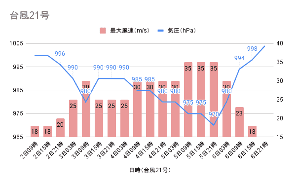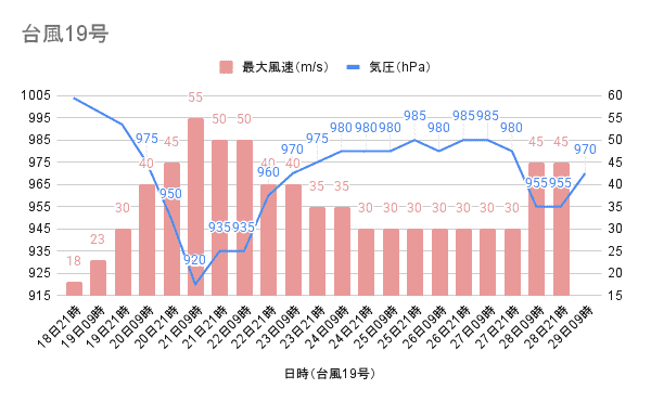 - 台風の発生日と熱帯低気圧 or 温帯低気圧に変わった日