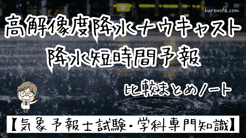 気象庁のホームページで「高解像度降水ナウキャスト」や「降水短時間予報」という表示はないけど、これらの予報はどこで利用されてるの?など・・・気象予報士試験のための学科・専門知識で勉強していて、ややこしいな〜と思う部分をまとめておきたいと思います。